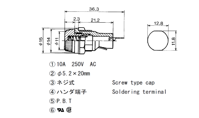 5*20 面板安裝保險(xiǎn)絲座 MF-522 UL C SA 10A250V
