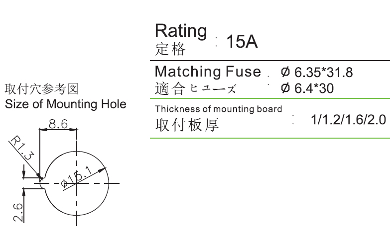 6*30 面板安裝保險絲座 FH-001ASF UL CSA 15A250V